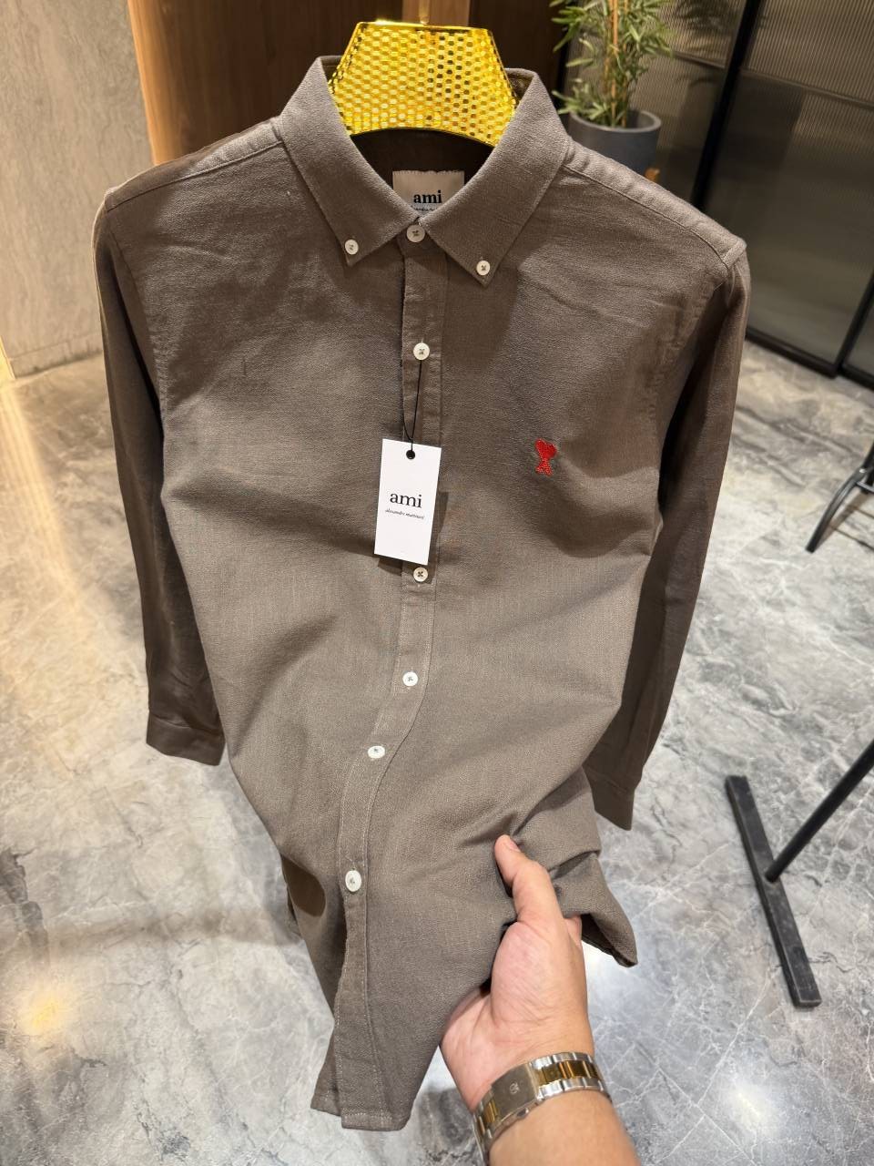Ami Paris Brown Pure Linen Shirt