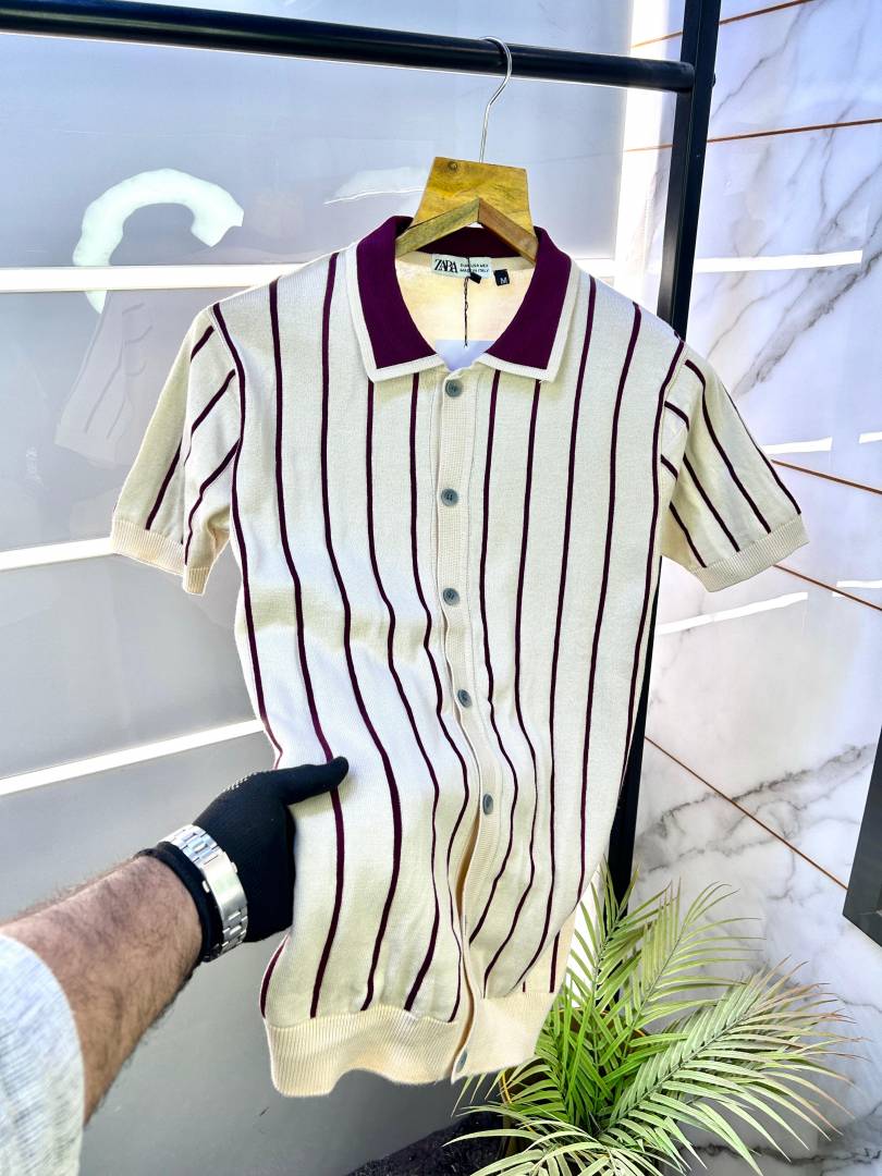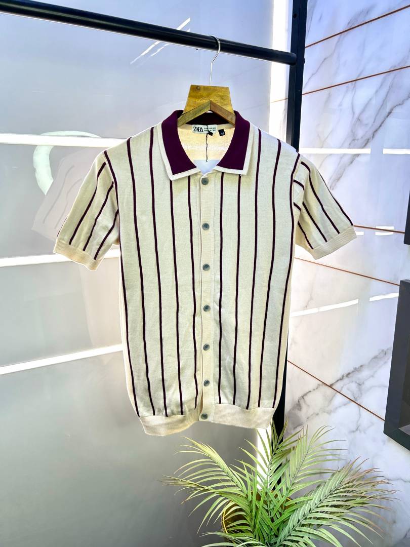 Zar a Knitted Cream Imported Super Premium Collar Shirt F2755-CR